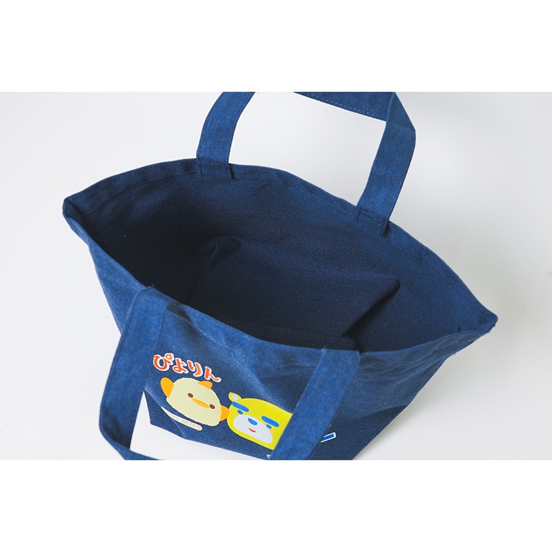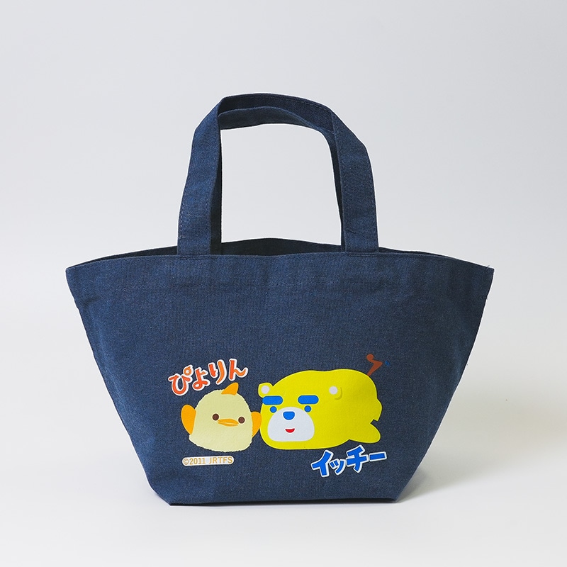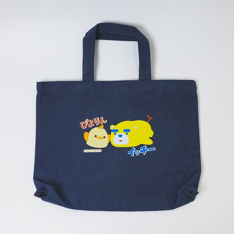 底面のボタンで形状が変えられる、2WAYトートバッグ。 ランチバッグとしても、A4サイズが入る資料持ち運び用バッグとしても使えます! 寝そべったイッチーとぴよりんのヒソヒソ話が聞こえてきそうなデザインです!