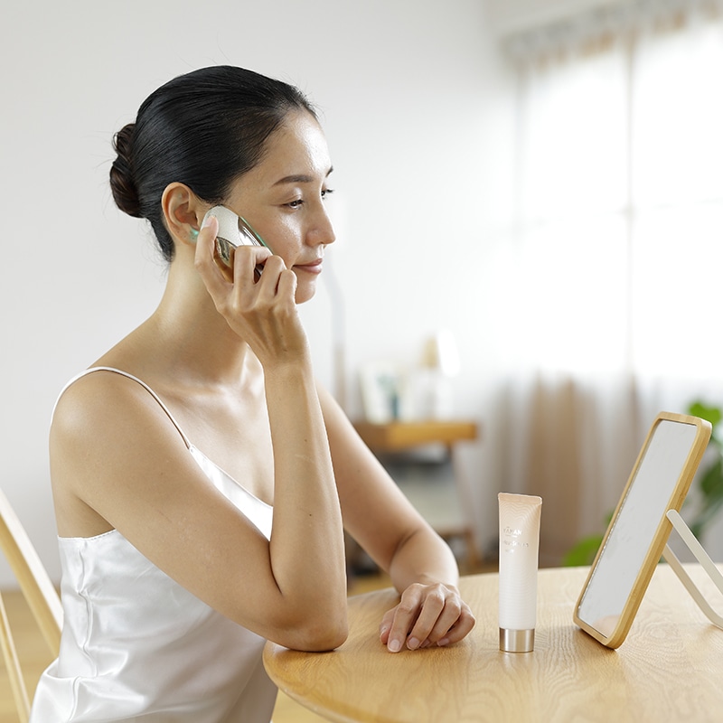 美容機器マーケットシェア5年連続NO.1のヤーマンが手掛けるリフトケアシリーズ。 有名雑誌「美ST」や「MORE」でもランキング1位を獲得したシリーズより「リフトロジー」をご紹介。 リフトケアに特化、独自のEMS波形技術を駆使した次世代美容アイテム! 「大小頬骨筋(通称リフト筋)」が衰えると、お顔のもたつきにつながり、目元・口元に影が入り、どんよりとした印象につながることも…。そこで「リフトロジー」の出番! 半顔1分、大小頬骨筋やもたつきが気になる箇所に置くだけケアが叶いました。 その秘密は、7つの大きな電極からEMSを広く出力するから! 面が大きく、1度で低・高周波EMSを複合的に出力し、広い範囲へのアプローチが可能に。 エステの施術を再現した、「ストレッチ」「タッピング」「収縮トレーニング」といった3種類の波形を組み合わせて、効率よく刺激してくれます。 EMSのレベルは6段階から選べ、気分に合わせてケア可能です。 また3段階のデュアルヒーター(温感)であたためながらアプローチすることでお肌の土台を整え効率的なケアを目指します。 またフェイスモードにはサロンでも取り入れられる「緑色LED」を採用しています。 フェイスへのケア以外にもボディモードを搭載し、デコルテや二の腕などのボディへ使用できます。 ボディモードにはヤーマンこだわりの「赤色LED」を搭載しています。 一日のちょっとした時間で簡単リフトケア! 美容ジェルセットのため、届いてすぐ体感できます。