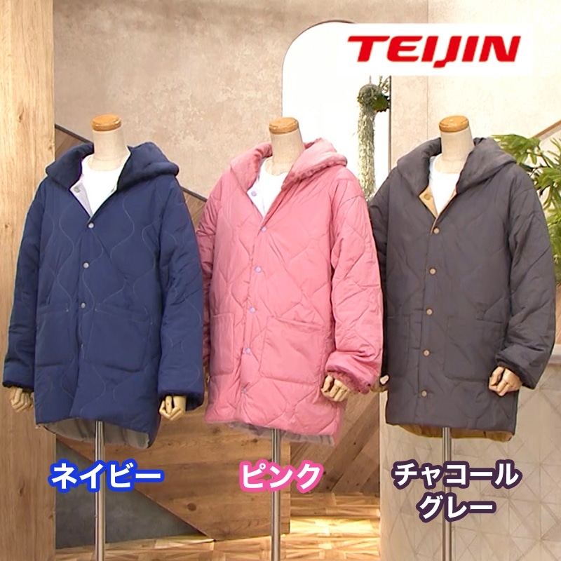 なにかと物価高の昨今…気になるのが電気代。 冬には欠かせない、エアコン、ストーブ、こたつ、電気カーペットなど… 夏より冬の方が電気代が高くなってしまいがち… そんな寒い季節に、電気代の大幅節約につながるアイテムのご紹介! 大手メーカー「テイジン」が開発した“令和版半てん”の登場です。 重さ約500gで軽やか!動きやすくストレスフリー。 袖口にはゴム仕様なので、家事中は腕まくりができます。 ふわふわのボア付きで首元・袖もあたたか、お尻までカバーする長めの丈です。 羽織るとじんわりあたたかく、ぽかぽかの快適さが続きます。 その秘密は…中綿の「V-lap(R)BURNER」。 吸湿発熱繊維が、体から発する水蒸気や汗に反応して発熱します。 あたたかい空気層をしっかり溜め込む縦型構造になっています。 テイジンの高い技術力が詰まった高性能な「すぐぽか半てん」。 この実力だからこそ、シリーズ累計14万枚※を突破する人気商品なんです。 洗濯機で丸洗いOK!いつでも清潔にお使いいただけます。 リバーシブル仕様で、2通りのカラーで着用が楽しめます。 男女兼用のため、プレゼントにもオススメです。 ※期間:2020年11月~2025年8月