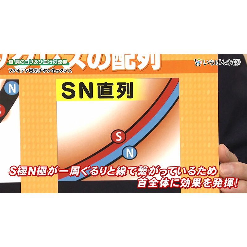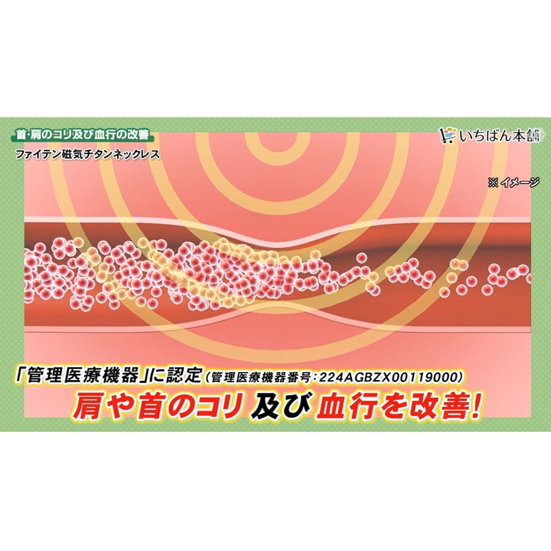 数々の有名アスリートから愛されるファイテンから、管理医療機器を取得した永久磁石の特別な磁気チタンネックレスが登場。 こちらの「ファイテン磁気チタンネックレスプラス」は、身体をリラックス状態へサポートする、ファイテン独自素材「アクアチタン」を、ファイテン最高レベル100倍の濃度で配合しています。 一般的な磁気ネックレスは、磁石のある部分のみでしか磁力が働きませんが、本商品は紐生地の中芯全体に磁石を採用している新しい構造。 紐部全体から50mT(ミリテスラ)の磁気が放出されるので、装着部位となる肩や首のコリ及び血行の改善に効果を発揮します。 服装を選ばないスタイリッシュなデザインに仕上げています。 約23gの軽さで、首回りも50cmとゆったりとした着け心地です。 Vトップ着脱式なので取り外しも簡単