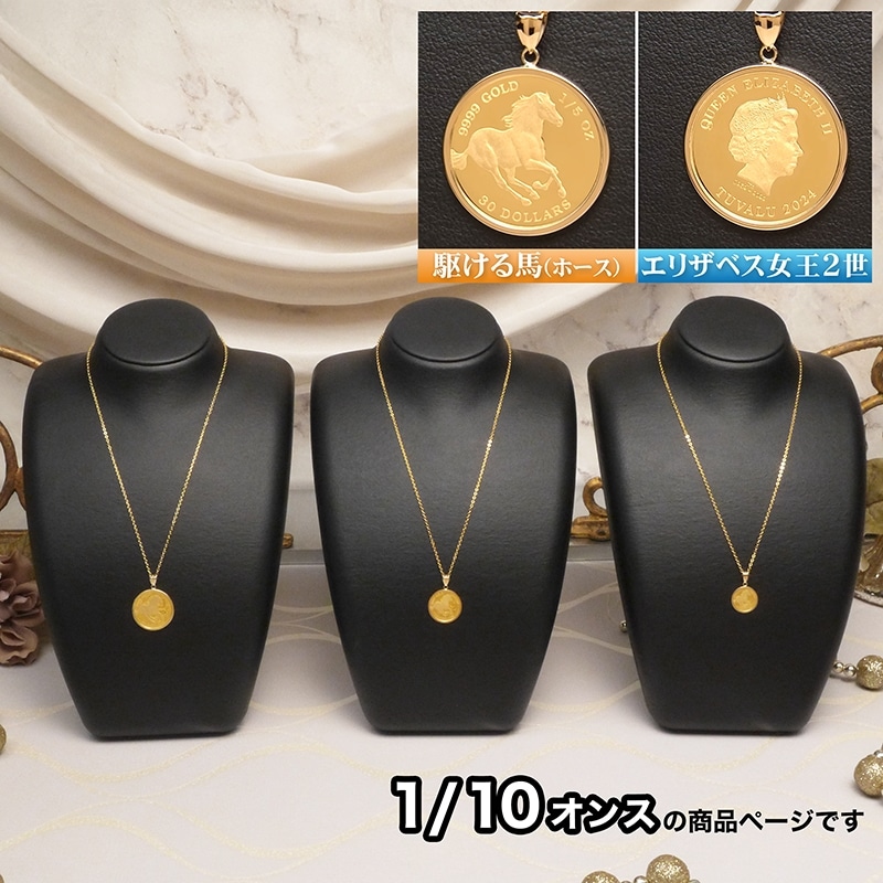 幸運のモチーフ「駆ける馬」と人気のエリザベス女王の純金コインペンダント!
