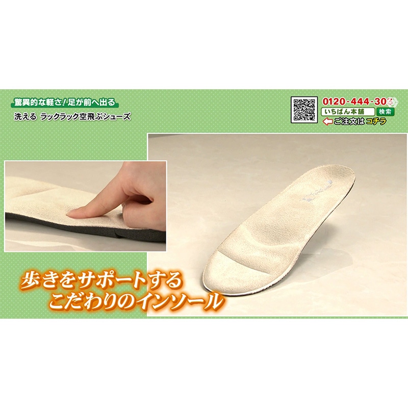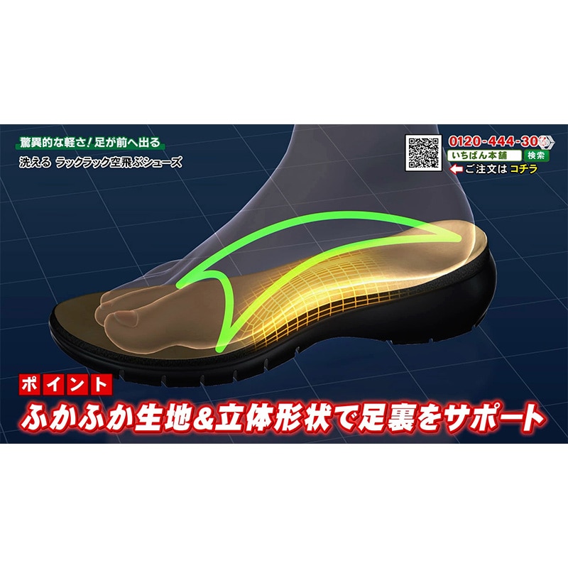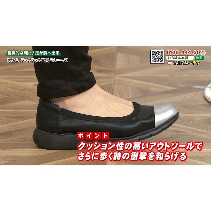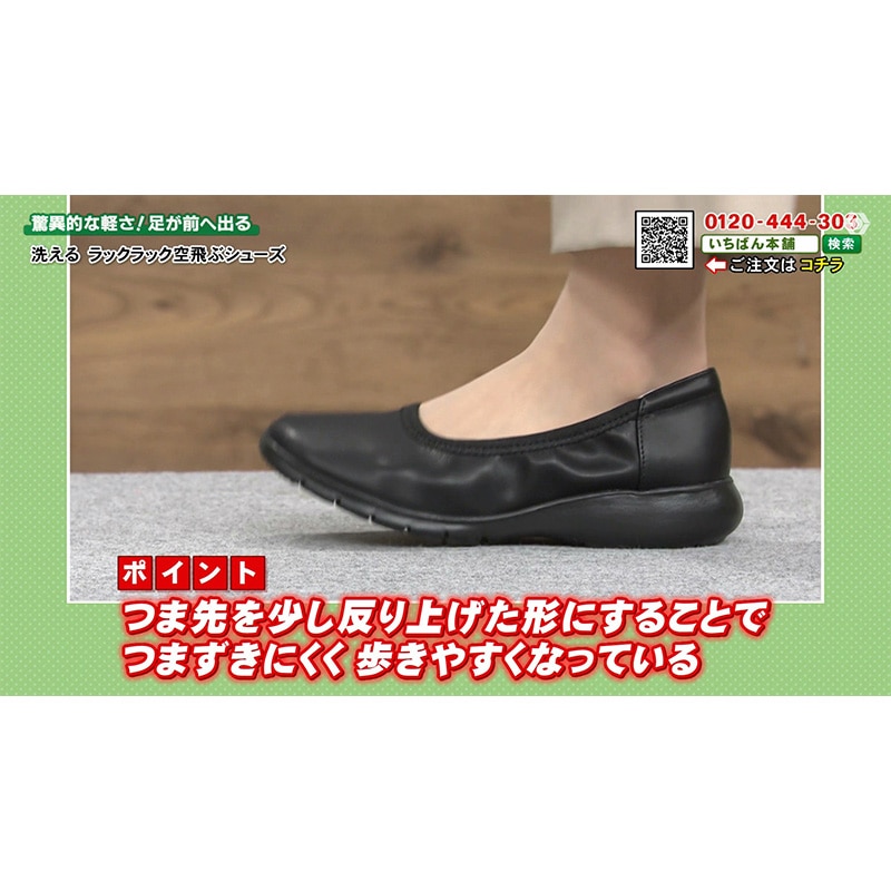 片足わずか約99g、卵2個分ほどで風船で浮くほどの軽さのシューズ! 足に負担を感じにくく、まるで裸足で歩いているような心地よさでどこまでも歩きやすく、普段のお出かけや旅行先での長距離移動も安心。 さらに汚れが気になったらまるっと水洗いができるから、いつでも清潔に。 アッパー生地はやわらかなスーパーストレッチ生地で足指の動きにぴったりフィットして、快適な履き心地を実現します。 アウトソールは足裏に沿うようにしなやかに曲がるので、自然で軽やかな歩行をサポート。 しかも4E相当のオリジナル木型を採用し、幅広さんのお悩みにも寄り添います。 風船が浮くほどの軽さと柔らかさで、 インソールにはアーチを支える立体クッションを、またかかとにはパカパカしづらいサポートパッド付き。 長時間歩いてもラクに、元気に前へ進めます。 どんなファッションにも合わせやすい機能的で上品なデザイン。 思わず外に出かけたくなるような一足、それがラックラックのパンプスです!