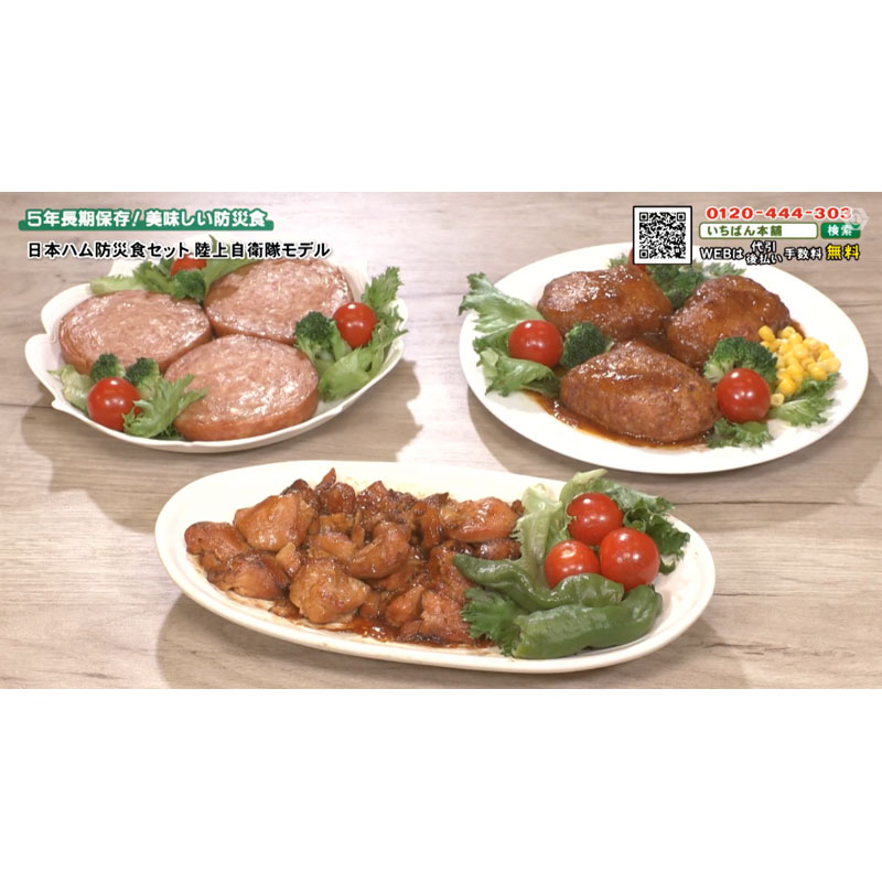 日本ハムが製造・納品している陸上自衛隊の携行食の中でも、隊員からの支持が高い3品を厳選し、家庭用にアレンジした「防災食」。